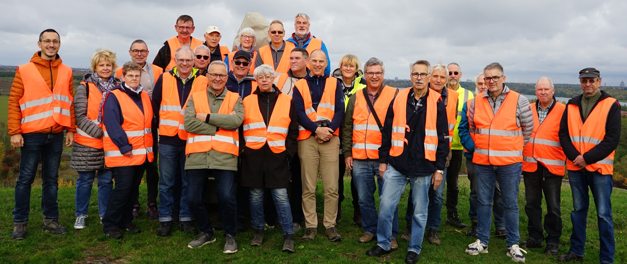 Den Abschluss bildete die Ersteigung der Deponie mit einem überwältigenden Ausblick auf die Leipziger Seen und den Bergbautechnikpark, natürlich untersetzt von umfangreichen Auskünften unserer Mitteldeutschen Kameraden und Kameradinnen zur Geschichte der Entstehung dieser Relikte der Vergangenheit.